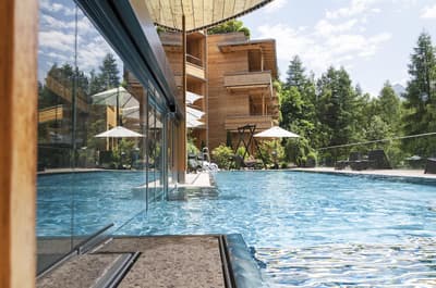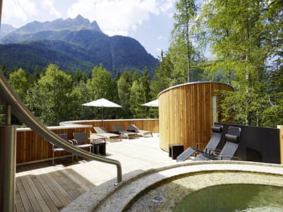 "WOW", c’est tout ce qui arrivera à sortir de votre bouche face à l’architecture de l’hôtel ! Construit en pleine forêt, le Naturhotel Waldklause s’érige au milieu des arbres et sa façade en bois s’inscrit parfaitement dans l’ambiance. Vous serez happé en moins de dix secondes, c’est sûr. C’est tellement bien fait qu’on dirait un ensemble de cabanes dans les arbres rejointes entre elles par des passerelles. Mais non, c’est bien un hôtel 5 étoiles ! Et tout ce qui va avec. Ici, le stress est proscrit. Le mot d’ordre, c’est nature, vous l’aurez compris. Mais s’il fallait en choisir un second, ce serait détente. Laissez-vous aller avec toute une ribambelle de massages –thaïlandais, anti-stress, alpin en duo avec votre partenaire. Reposez-vous dans le sauna. Profitez des jets d’eau du jacuzzi. Mais surtout, quoi de mieux qu’une piscine chauffée au milieu des montagnes ? Vous sentez déjà ce mélange de températures, n’est-ce pas ? Tout ça, sans jamais quitter des yeux la vue sur les montagnes enneigées et les sapins. Comme dans un rêve. Alors, déposez votre cerveau à l’entrée et récupérez-le à la sortie. A une condition : si, et uniquement si vos batteries sont rechargées à 100% !