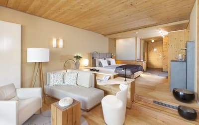 Système de lit naturel, TV, Coffre-fort, Minibar, Fontaine d'eau de source privative, Toilettes séparées avec bidet.