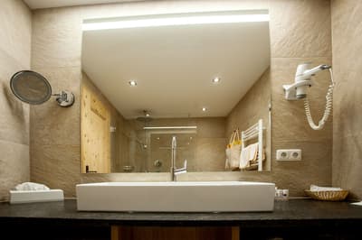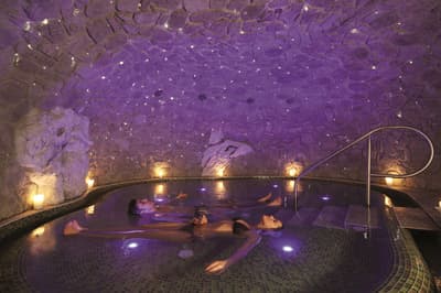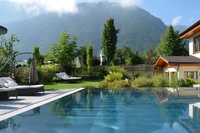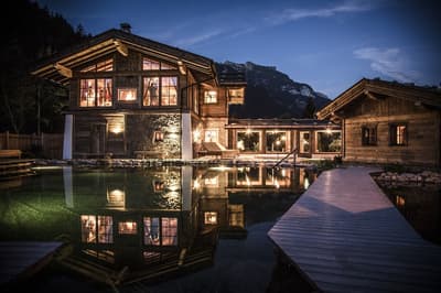 Envie d’un break nature, bien-être et sérénité ? Le Verwöhnhotel Kristall est parfait ! Un vrai décor de carte postale ! Niché dans les Préalpes tyroliennes, il surplombe les eaux turquoise du lac Achensee. Côté bien-être, c’est du high level : 8 saunas, 2 piscines, un hammam, des massages et des espaces relaxation à tomber sur plus de 2 000 m². Pour ce qui est de la sérénité, l’établissement est adults only. De quoi se faire chouchouter en toute tranquillité ! D’ailleurs, ça commence dès l’arrivée. La réception est joliment décorée : cheminée en pierre, comptoir en bois brut, tapis d’Orient et luminaire stylé. Une boisson de bienvenue vous attend au salon à côté, très chaleureux avec son plancher en chêne et ses grands canapés rayés rouge et gris. L’établissement est familial et ça se sent ! Le directeur vous accueille lui-même au restaurant. L’espace est divisé en plusieurs salles avec des ambiances différentes. La plus impressionnante ? La cave qui sert d’écrin au restaurant gastronomique. Arches de pierre, plafonds voûtés et fauteuils en velours frappé. Un décor qui va de pair avec la cuisine raffinée. Amateur de vin ? Ne manquez pas les dégustations organisées par les sommeliers dans la vinothèque ! Et pour une soirée animée, rendez-vous au Kristall Bar avec cocktails, musique live et DJ. Il y a même un mini-casino pour jouer à la roulette ou au blackjack. Bon, on est loin de Las Vegas, mais il y a tout ce qu’il faut pour s’amuser !