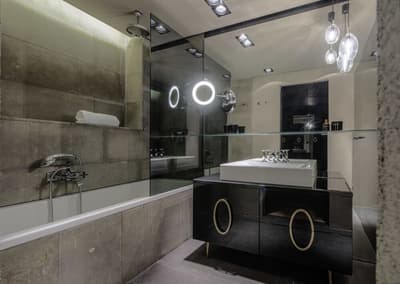 Encore plus spacieuse, c’est le top ! Faite pour accommoder une petite famille, elle a tout ce qu’il faut pour un séjour des plus agréables. Elle accommode un grand lit king et le salon est meublé de beaux canapés-lits. Salle de bain avec baignoire.