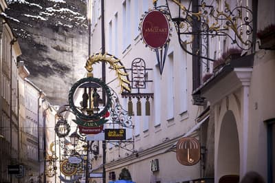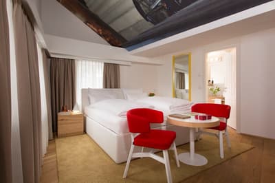 Si vous êtes fan d’histoire, de design et de Mozart, vous allez adorer le Goldgasse ! Côté historique, ce boutique hôtel atypique est niché dans une chaudronnerie du 16ème siècle. Situé dans une ruelle piétonne de la vielle ville, il est à deux pas de tous les sites et monuments incontournables. L’endroit a bien sûr été rénové mais a conservé quelques touches authentiques. A l’image des sols aux dalles usées et du vieil escalier en pierre brute qui vous mène à la réception. L’accueil est aussi chaleureux que pro ! Un verre de bienvenue, une serviette chaude et vous voilà parti pour inspecter les lieux. Le lobby affiche un look scandinave avec ses chaises modernes et ses photos de Salzbourg encadrées. Au resto, l’ambiance change du tout au tout ! Le style est 100 % autrichien avec plafonds en bois, chaises sculptées et lustres anciens. Un côté tradi qui s’accorde avec les spécialités régionales. Vous pouvez aussi vous installer en terrasse mais attention, le restaurant est réputé ! Il est prudent de réserver. Et à la belle saison, la petite terrasse privée sur le toit permet de siroter un cocktail avec vue sur la ville. Quant aux chambres, chacune est décorée sur le thème d’une production artistique du Festival de Salzbourg. Sur fond de meubles design et d’équipements élégants, les murs peints vous racontent une histoire d’opéra. Un décor éclatant qui vous donne l’impression de monter sur scène ! A vous de chanter maintenant...