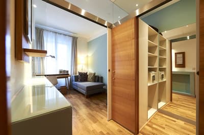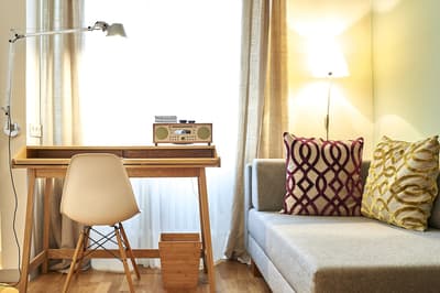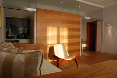Dans un style résolument moderne, elle arbore un parquet en bois clair, un mobilier tendance et se complète par des luminaires design. La chambre est dotée d’un lit de 180 cm et la salle de bains est équipée d’une douche et d’une baignoire. Le tout dans une atmosphère zen !