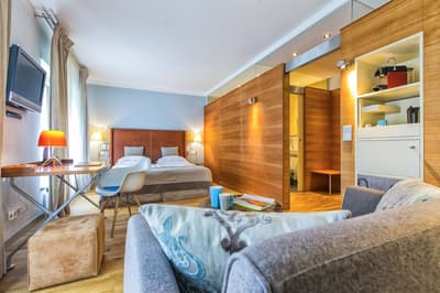 TV LCD FULL HD, Système musical Tivoli, Cafetière Nespresso, Bouilloire & bar à thé, Téléphone, Minibar, Coffre-fort, Sèche-cheveux, Bureau, Peignoir, Connexion WiFi gratuite.