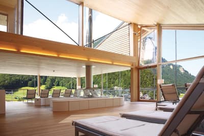 Ça vous dit une plongée dans le luxe à l'autrichienne ? Si oui, prenez la route d'Au dans le Vorarlberg et foncez à l'Hôtel Krône. Ancien pavillon de chasse des comtes de Montfort, cet établissement 4 étoiles dispose d'un intérieur épuré so design agrémenté de meubles haut de gamme qui vous fera vous sentir comme un vrai pacha. Le must ? Opter pour l'une des chambres avec une vue panoramique sensationnelle sur les imposantes montagnes et la forêt du Bregenzerwald qui l'entoure. Comble du luxe : l'hôtel dispose d'un spa en roof top (la vue y est encore plus folle) où vous pourrez profiter des joies du sauna, du solarium et des bains de vapeur avant d'aller vous prélasser sur les transats. Et tant qu'à faire, pourquoi ne faire vous offrir un petit massage ou bien un soin esthétique qui laisse la peau toute douce au passage ? Comme si ça ne suffisait pas, il y a aussi une piscine intérieure chauffée et un lac naturel située dans un grand jardin parfaits pour une petite séance baignade. Pour finir, il ne vous reste plus qu'à vous installer à la table du restaurant ! Au menu : un dîner raffiné composé de 5 plats imaginé par le chef et son équipe et qui fait la part belle à la gastronomie locale, avec des produits hautement qualitatifs. Pas étonnant que l’Hôtel Krone ait décroché le label AMA-Gastrosiegel Vorarlberg, qui récompense les établissements favorisant les bons produits de cette région. Miam miam !