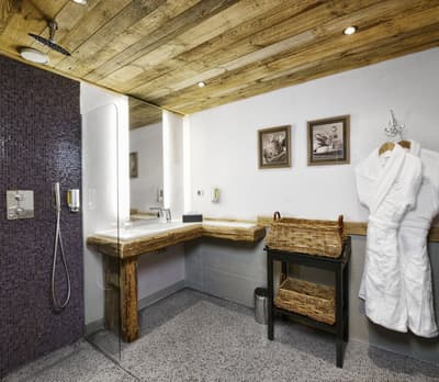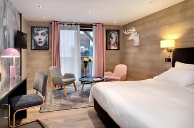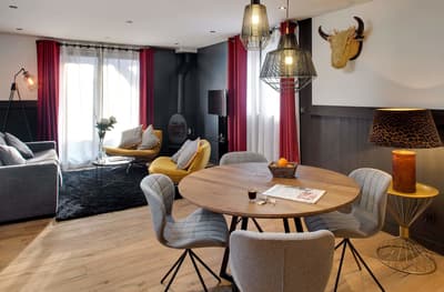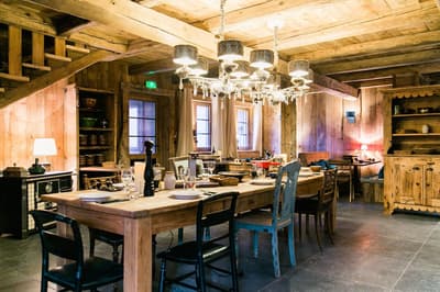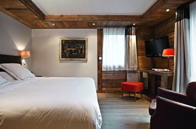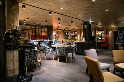 Si vous venez en hiver, vous serez directement au pied du domaine skiable des Gets. Et en été, à deux pas des chemins de randonnée. Un chalet qui s’appelle la Marmotte, tout de suite ça donne envie d’être dorloté ! C’est la promesse de la famille Mirigay, la même qui, depuis 1947, gère cet établissement. Ou plutôt ces établissements : deux chalets blottis au cœur du village. Quelques meubles anciens, un fauteuil club une réception dominée par le bois brut, déjà se devinent plusieurs ambiances dont une envie de modernité. Certes, les chambres côté Marmotte ont conservé les codes boisés d’une déco très tradi aux douillets édredons. Mais les suites ont décidé de jouer la carte d’une contemporanéité bien affirmée. Et au Tapiaz ? Chambres comme suites, sont toutes abonnées à un rustique chic très design faisant l’éloge du bois et de cuir. Spécialités locales, brasserie avec cuisson au feu de bois ou cuisine bistronomique. Sans compter le petit frère, directement sur les pistes : dire que vous aurez du choix parmi les restaurants n’est pas une expression. Et, le soir venu, qu’il est agréable de s’installer au salon bar. Avec ses fauteuils et ses canapés dépareillés, ses tables basses et ses cheminées, c’est tout à la fois cosy et joyeux.