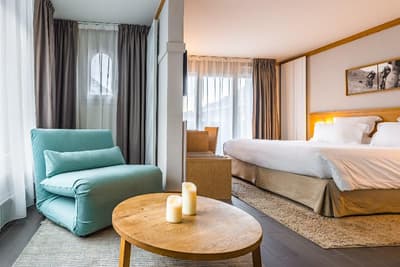 Vous cherchez un refuge contemporain où poser votre valise (ou sac de rando) à Chamonix ? Arrêtez-vous à l’hôtel Le Morgane. Son architecture moderne rappelle les codes montagnards, en affichant en façade du bois et de la pierre, qui provient des vallées italiennes voisines. Ce boutique-hôtel arbore un design épuré, on apprécie notamment le choix de luminaires et de certains fauteuils. Côté chambre, on préfère celles qui ont la vue sur le massif du Mont Blanc pour prendre la pause depuis son balcon #vacancesdereve. Après une journée au grand air, vous apprécierez le calme de l’hôtel et son salon à la déco soignée en savourant un cocktail. Et le soir, inutile de sortir pour dîner, le restaurant de l’hôtel, Le Comptoir des Alpes, est l’une des tables plébiscitées de Chamonix, à tester les yeux fermés. L’hôtel a aussi le gros avantage de se situer à une centaine de mètres de l’excursion incontournable de la vallée : l’Aiguille du midi (à faire tout au long de l’année, mais en choisisant une journée ensoleillée pour la vue). Au petit matin, vous pourrez donc emprunter la très convoitée « première benne ». Vous évitez ainsi d’attendre des plombes pour tester le fameux pas dans le vide et vous n’aurez pas besoin de jouer des coudes pour poser devant le mont Blanc.
