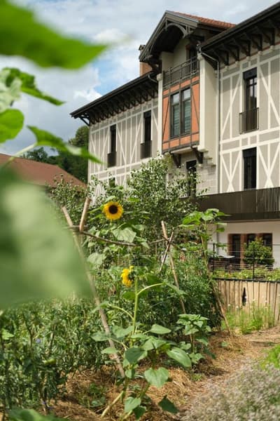 La Maison Aribert tient son nom de Christophe Aribert. Un chef cuisinier encensé tant par le Guide Michelin que par le guide Gault et Millau, et qui a eu la bonne idée de fonder son propre hôtel restaurant, perché dans les hauteurs alpines. Imaginez un chalet du 19e siècle sur trois étages orné de fins colombages, qui ouvre directement sur les Massifs du Vercors et de la Chartreuse – un décor au poil pour les amateurs de calme. On y vient pour profiter de la nature, et bien sûr pour goûter à la cuisine gastronomique raffinée du chef ! Celle-ci est composée à partir de produits locaux et de saison, et donne un joli coup de projecteur aux plats typiques de la région, comme la pintade de Trièves ou les champignons de Voreppe. Il faut dire que Christophe est un enfant du pays, particulièrement attaché à la nature et aux ressources locales. Ça se sent dans l’assiette, et ça se voit aussi côté ressources humaines : dites bonjour à Sophie, une experte du coin qui vous recevra pour un soin massage propice à mettre au tapis tous les petits tracas du quotidien ! Le maître des lieux a également collaboré avec des artisans locaux pour réhabiliter l’ancienne bâtisse en un cocon moderne et cosy. En témoignent les neuf chambres d’hôtes avec leur doux tons pastel, qui donnent directement sur le relief alpin. Top, la vue ! Point de télé à l’horizon, vous l’aurez compris, ici on vient pour déconnecter. Après avoir testé le moelleux de la literie haut de gamme, il ne vous reste plus qu’à enfourcher un vélo pour une balade ou à squatter l’espace bien être en accès libre.