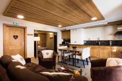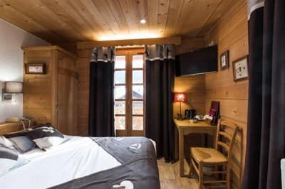 Comme une intro à la station huppée de Megève, Praz-sur-Arly offre un visage d’authentique station-village. Si vous optez pour ce chalet tout dodu en plein cœur du village, il vous faudra choisir entre trois possibilités. Car l‘hôtel restaurant Spa La Griyotire propose tout à la fois un hôtel de 16 chambres, 5 appartements tout confort et un chouette chalet à privatiser. A deux, privilégiez donc l’hôtel ! Rien à faire et le sourire est compris. Les chambres sont petites et cosy, et, si elles cèdent un peu à la tentation de la tradition, s’accommodent d’une simplicité qui leur confère un brin de légèreté. Et la vue, massif ou Megève ? Choisissez l’exposition ! En famille, l’appart en résidence révèle ce même penchant pour la simplicité, d’un style épuré, cuisine équipée en prime. A l’arrivée, les lits sont faits et le ménage en fin de séjour est inclus ! Vous avez décidé de venir avec les copains ? Le chalet, décidément plus contemporain, est adapté pour 14 personnes, si vous voulez faire le plein : 200 m2 pour la tribu dont un dortoir pour 8 galopins. Envie d’un chocolat chaud ? Juste de vous réchauffer ? Serrez-vous autour de la cheminée, avant de vous attaquer à la cuisine, bien locale, du restaurant. Demain matin, pas besoin de réveil : les cloches de l’église tinteront !