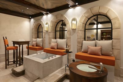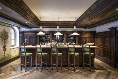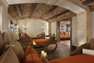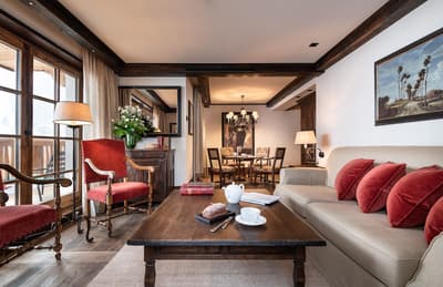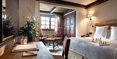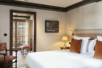 Qui n’a pas entendu parler du "Place Les Airelles", à Courchevel ? L’adresse a désormais sa petite sœur en Haute Tarentaise : Mademoiselle Val d’Isère. Ici, Mademoiselle, qui a dirigé Les Airelles durant 15 ans, a troqué le palais de Sissi pour une ambiance plus sobre, inspirée par la Haute Epoque. Pour ceux qui auraient oublié leurs cours d’histoire, on parle du Moyen Age, et plus particulièrement du 13e et 14e siècle. Dès l’arrivée, tout le monde est en costume d’inspiration médiévale. Le desk est un meuble d’origine où on vous remet la clé de votre chambre accrochée à une petite bourse. Pour parfaire le décor, le Palace abrite pas moins de 4000 pièces chinées d’origine et de nombreuses reproductions, comme ces portraits qu’on retrouve un peu partout, jusque dans les toilettes. Au sous-sol, le spa s’articule autour de la piscine imaginée comme un lavoir médiéval, avec son échoppe à jus et ses lits de repos aménagés dans d’anciens traineaux. L’hôtel de 10 000 m2 (pour seulement 35 chambres & suite et 5 appartements) est privatisé pour ses hôtes. La clientèle extérieure est acceptée uniquement dans les boutiques et au restaurant. De quoi profiter d’un séjour luxueux, en toute tranquillité.