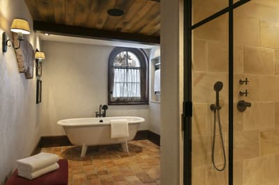 Bien que la décoration s’inspire de la sobriété du Moyen Age, vous ne manquerez de rien chez Mademoiselle, l’hôtel est en attente de sa distinction de « Palace ».