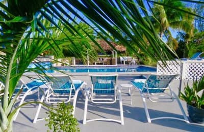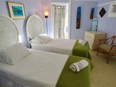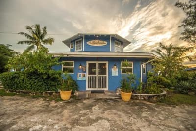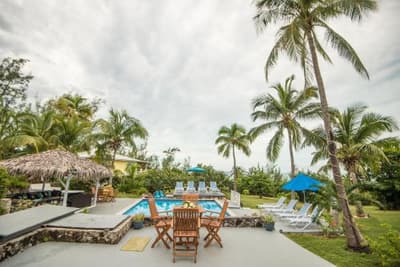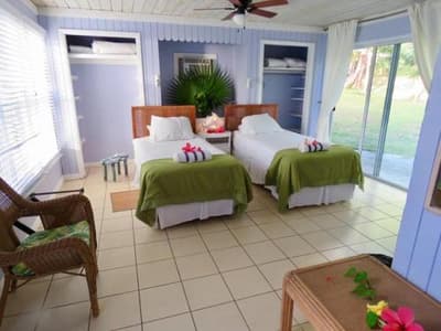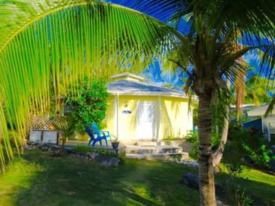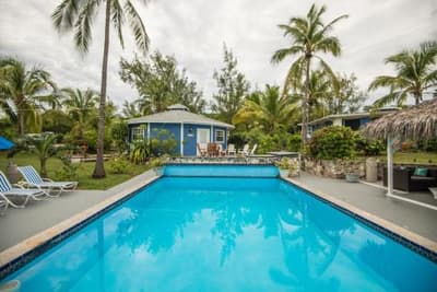 Un hôtel à l’esprit décontracté face à la mer sur une petite île des Bahamas. On aime beaucoup ses petits cottages colorés !