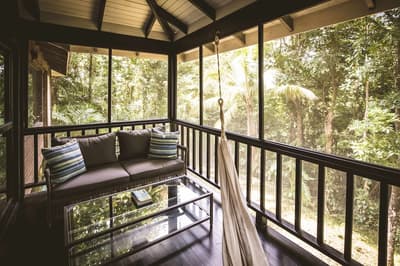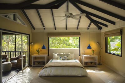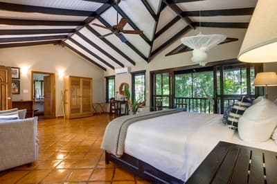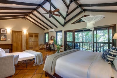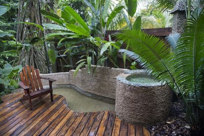 Élégamment conçue, elle comprend un beau parquet, un mobilier confortable et se complète par des luminaires design. La chambre est dotée d’un lit king-size et d’un lit de repos et la salle de bains spacieuse est équipée d’une douche à l'italienne privée offrant une vue sur la jungle du sol au plafond. Elle dispose également d’un coin salon et d’une baignoire extérieure pour des bains rafraîchissants. Le tout dans une ambiance tropicale !