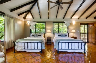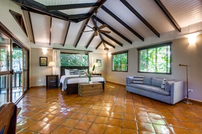 Élégamment conçue, elle comprend un beau carrelage, un mobilier confortable et se complète par des luminaires design. Les deux salles de bains spacieuses sont équipées d’une douche à l'italienne privée. Le tout dans une ambiance tropicale !
