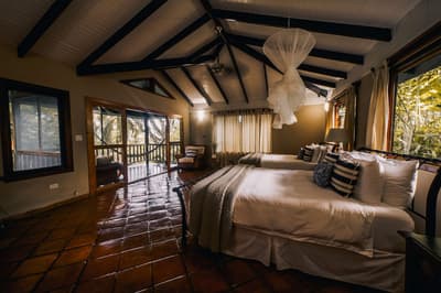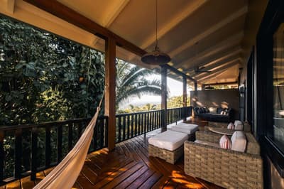 Cette magnifique suite offre une vue panoramique sur la canopée de la jungle que vous pourrez contempler de la grande véranda privée; idéale pour prendre le petit-déjeuner, admirer le coucher de soleil, tout en prenant votre apéritif. Après vos activités de la journée, vous pourrez nager dans la piscine privée à débordement.