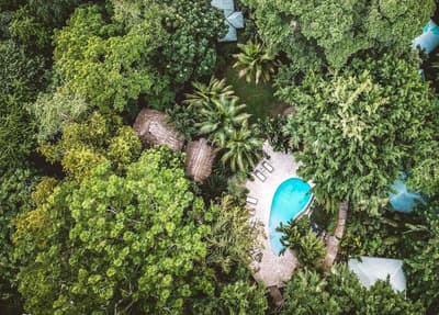 Fermez les yeux et imaginez-vous au milieu de la jungle, en suspension au-dessus de la canopée. C’est l’expérience de ouf que propose le Copal Tree Lodge ! Bienvenue au sud du Belize, sur les terres d’un pionnier de l'agro-tourisme qui propose aujourd’hui une expérience écolo luxueuse dans un environnement totalement privilégié. Retraite nature entre potes, mariage à l’autre bout du monde ou aventure écoresponsable, tout est possible dans ce paradis vert, situé à l’extrême sud du pays. Sur place, une ferme bio, une distillerie artisanale, et surtout une réserve naturelle de 50 km traversée de nombreux sentiers, pour les accrocs de rando. Bref, c’est un peu le paradis ! Votre spot pour chiller au frais : la piscine en forme de haricot nichée dans la forêt tropicale. L’endroit rêvé pour une sieste avec un bon bouquin. Le tout accompagné, évidemment, d’un cocktail au rhum vieux issu de la distillerie maison et préparé avec soin par votre bartender. Mais attention à ne pas en abuser, surtout si vous avez programmé une sortie snorkelling dans la mer des Caraïbes ou une excursion en canoë sur le Rio Grande. Pas étonnant que ce resort ait été élu meilleur hôtel de l’année par Travel + Leisure !