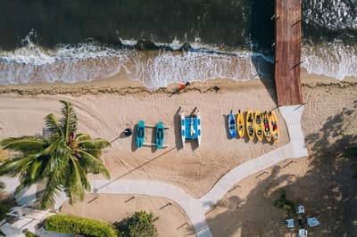 Si vous cherchez une escale isolée à deux pas d’un des villages côtiers les plus typiques du Belize, vous avez sonné à la bonne porte ! Vous êtes arrivés à Hopkins ! Welcome to the Lodge at Jaguar Reef, un véritable sanctuaire chic & private qui offre des panoramas complètement oufs sur la mer des Caraïbes. L'entrée du resort reflète l'essence de l'engagement de l'adresse pour un luxe écoconscient et respectueux de l'environnement. Ici, l'artisanat traditionnel et la conception durable s'entremêlent pour créer un lieu à la fois authentique et élégant. C’est le paradis, et votre aventure commence ici ! Le resort compte une dizaine de pavillons XL totalement inspirés par l'architecture caribéenne. Ils sont posés à deux pas de la playa, idéal pour le petit plouf du matin ! Evidemment, vous allez kiffer prendre votre café bio au bord de la piscine ou écouter des concerts de musique locale, les pieds dans le sable. Mais le vrai spectacle se joue dans les suites de luxe, avec leurs immenses baies vitrées qui permettent de plonger les yeux dans le bleu de l’océan. Et qui sait, avec un peu de patience, vous apercevrez Némo ou la petite sirène nageant vers l’horizon…
