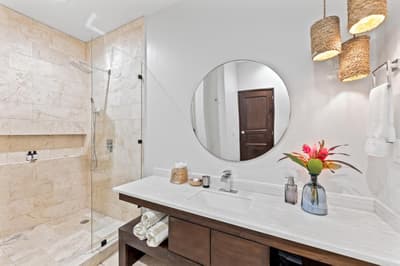 Superbe ! Cette belle suite a tout le nécessaire pour un séjour merveilleux. Installée à l’étage, elle profite d’une belle vue sur les couchers de soleil. Le balcon, d’une dimension généreuse, dispose d’une piscine. Elle accommode un grand lit king et d’un salon complètement aménagé. Salle de bain chic avec douche et baignoire.