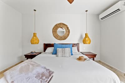 Superbe ! Faite pour accueillir une famille, elle est spacieuse et purement confortable. D’une dimension généreuse, l’extérieur est merveilleux et dispose d’une petite piscine. Disposant de 2 chambres, elle accommode un grand lit king et des lits jumeaux. Salon avec canapé et fauteuils. Indépendante et fonctionnelle, elle dispose d’une cuisine complètement équipée. Salles de bains avec douches.