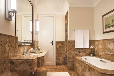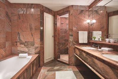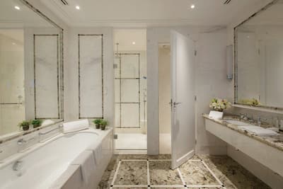 L’ensemble est dans un style de décoration claire et lumineuse avec une belle moquette au sol, un mobilier raffiné et se complète dans des teintes apaisantes avec une touche botanique ludique. La chambre peut être dotée d’un lit king ou deux twins et la salle de bains en marbre spacieuse peut être équipée d’une baignoire et douche séparées. Le tout dans une atmosphère conviviale !