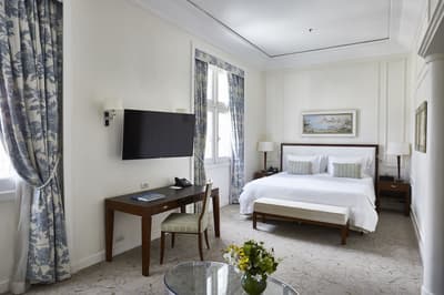 Spacieuse et élégante, elle offre une vue vibrante sur la ville que vous pourrez contempler du balcon ou de la véranda privée, tout en sirotant votre café du matin. Située dans l’aile de la tour, elle peut communiquer avec une chambre supérieure avec vue sur la ville. Après vos activités shopping ou excursion, vous pourrez vous détendre dans le coin salon avec canapé confortable, tout en prenant votre apéritif.