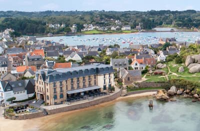Castel Beau Site : un nom qui va à merveille à cet hôtel emblématique du littoral breton, posé dans une crique juste idyllique de la Côte de granit rose. Et qui lui va d’autant mieux qu’il a subi un lifting complet et super réussi, sous la houlette du groupe H8 Collection et de l'architecte d'intérieur Natalia Megret. Le bâtiment presque centenaire, ainsi relooké, a entamé un nouveau chapitre de son histoire. Une histoire qui remonte à 1928, année où il fut construit sur la plage de Saint-Guirec. Celle d'une simple pension de famille baptisée « Beau Site », devenue un centre de vacances du ministère de la Défense, puis un hôtel en 2002. Aujourd’hui, le Castel Beau Site affiche avec superbe ses quatre étoiles. L’hôtel s’est imposé comme une institution et indéniablement comme une des plus belles adresses des Côtes d’Armor. Dès votre arrivée dans le lobby, pavé de carreaux de ciment aux teintes douces, vous tombez sous le charme : ah, cette alchimie subtile entre tradition et modernité, élégance et design, luxe et décontraction... Au Castel Beau Site, les chambres sont raffinées, les salles de bain ouvertes sur l’océan, la cuisine inventive, le Youbee’s Bar branché et la vue incroyable (face à la mer et aux roches roses !). Et le jacuzzi ? En extérieur, face à la plage à ciel ouvert. Carrément magique !