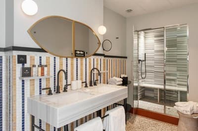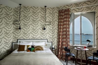 « What a bric-à-brac ! » aurait dit le colonel Hamilton, à la fin du XIXe siècle, en découvrant cette bâtisse bizarre : un imbroglio de pierres, corniches, petits escaliers et terrasses en pagaille, construit à flanc de falaise face à la baie de Dinard. Le nom est resté : « Bric-à-Brac » a donné « Castelbrac ». Mais vous, à notre avis, vous allez plutôt sortir un énorme « Wahou ! » en découvrant ce qui ressemble tout à la fois à une villa, un château et un manoir anglais. En clair, ce qui ne ressemble à rien d’autre qu’au... Castelbrac. Dans les années 30, cette bâtisse insolite a hébergé un laboratoire du Muséum national d’histoire naturelle, sur reco du commandant Charcot. Avant de devenir, en 2015, un hôtel de luxe — un joyau à l’état pur devrait-on dire ! Des preuves ? La déco design signée Sandra Benhamou, teintée de touches éclectiques et Art nouveau. Mais aussi les 25 chambres avec vue plongeante sur les eaux de la côte d'Émeraude, le resto gastronomique, et le bar chic et trendy installé dans l’ancien aquarium du temps de Charcot. Sans oublier le bassin de nage, comme suspendu, et le spa placé dans l'ancienne capitainerie… Le tout conjugué à des prestations de haute volée. Vous l’aurez compris : vous êtes dans un refuge d’excellence où brillent cinq étoiles hautement méritées.