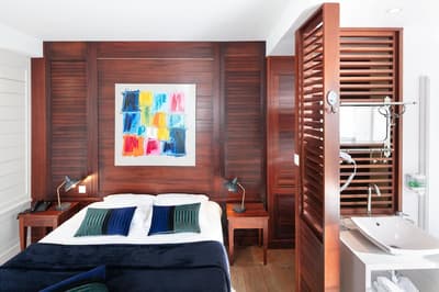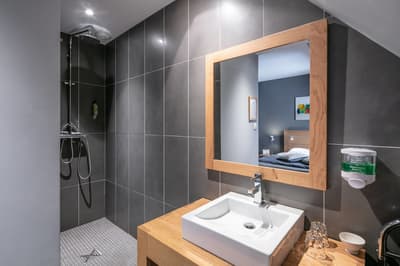 La Vinotière. Quesako ? On vous explique ! Le nom d’abord : celui d’une petite balise rouge bien connue des pêcheurs à la sortie du port du Conquet. Le concept ensuite : celui d’une maison pensée comme un hôtel. Et précisons tout de suite, d'un hôtel éco-durable. Car ici, tout est aménagé et organisé selon un prisme, celui du bon sens écolo qui anime la sympathique maîtresse des lieux, Joëlle Tromeur. Économies d’énergie, circuits courts et spécialités locales… Tous les critères sont cochés. A tel point que l’hôtel a même reçu l’Écolabel européen en 2014 ! Label qu’il a finalement abandonné, pour une question de coût surtout, sans renier un seul de ses engagements environnementaux. Et c’est bien là l’essentiel. Alors, qu’allez-vous trouver dans cette ancienne maison d'armateur du XVIe siècle ? Cinq chambres et un appartement soignés desservis par un bel escalier en colimaçon et en pierre de taille. Une déco superbe entre vieilles pierres, bois clair et matériaux contemporains. Un jacuzzi niché dans sa tourelle et un salon de thé gourmand ouvert du petit déjeuner à la fin d'après-midi. Le tout dans le cœur historique du Conquet, à deux pas du vieux port et de l’embarcadère pour les îles d’Ouessant et de Molène. Tout simplement top !
