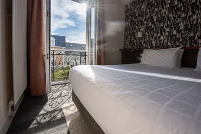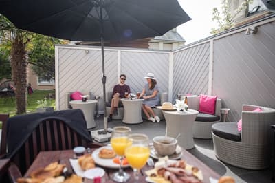 Imaginez un peu : vous êtes à deux minutes à pied de l’une des plus belles plages de France ! La plage de Sillon, la plus grande plage de sable de Saint-Malo, s’étire sur deux kilomètres et regroupe la Grande Plage, la plage de la Hoguette et la plage de Rochebonne. Cette longue bande de sable, célèbre pour ses brise-lames, est à la fois tournée vers l'horizon marin et la digue de Paramé, où s’alignent les plus belles villas malouines. C’est là que, dans une super harmonie avec un environnement urbain-marin, se dresse l’hôtel la Villefromoy : une ancienne maison thermale de 1880 exploitée en pension de famille au début du XXe siècle et, depuis trois décennies, en hôtel 4 étoiles. Cette jolie demeure, à la façade flanquée de délicates balustrades en fer forgé, a été entièrement retapée il y a cinq ans : dans la pure tradition de Saint-Malo, elle exhibe touches d’acajou, fauteuils en rotin, maquettes de voile et coquillage géants. On vous y accueille au son de notes jazzy diffusées dans le salon-bar, pièce maîtresse de l’hôtel où trône un piano blanc, et ouvert sur un jardin coquet. C’est charmant, convivial et cosy. L’âme de la maison est quasi palpable. A tel point que vous aurez très vite envie de prolonger votre séjour !