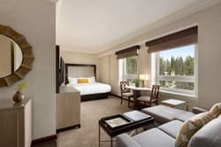 Vous avez déjà vu le film The Grand Budapest Hotel, avec cet hôtel super classe et immense paumé au milieu des montagnes ? Eh bien le Fairmont Chateau Lake Louise nous plonge un peu (beaucoup) dans cette ambiance-là. Imaginez une grande bâtisse blanc crème de dix étages de haut qui s’étale le long de l’eau calme du Lake Louise, en plein milieu du Canada, avec en arrière-plan les sommets arpentés des Rocheuses et les forêts de conifères. Ça en jette comme cadre, n’est-ce pas ? On a évidemment plusieurs suites et chambres (toutes équipées de lit queen size ou king size pour un max de confort) qui donnent directement sur ce paysage royal. En fait, l’hôtel compte plus de 539 chambres à la déco raffinée en tout, ça vous donne une idée de sa taille ! Et la démesure ne s’arrête pas là : il y a pas moins de sept restaurants gastronomiques sur place, proposant chacun des spécialités différentes. La bonne nouvelle, c’est que les chefs sont dans tous les cas très attachés aux produits frais de la région, venus des fermes et artisans environnants. En parlant d’environnement, notez que le Fairmont est labellisé Green Key depuis une paire d’années et a mis en place tout un tas d'actions pour limiter son empreinte carbone. Envie d’une petite sortie ? Et si vous alliez faire un petit tour en ski à 10 minutes de l’hôtel ? Vous pouvez emprunter du matériel directement sur place, et même compter sur l’expertise d’un valet personnel.