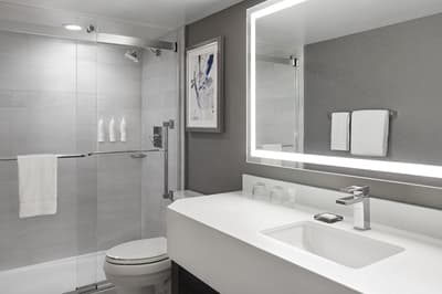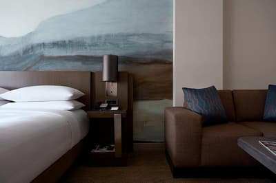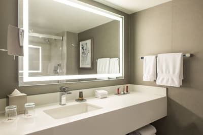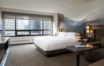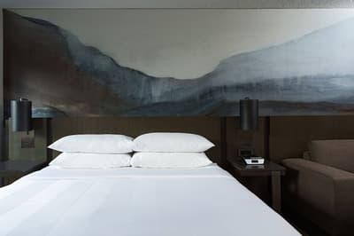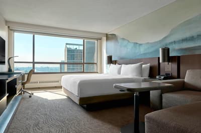 Au cœur de Downtown, ce Marriott joue la démesure : 2 buildings, 525 chambres, 23 étages. Rien que ça ! L’hôtel est à l’image du centre-ville de Calgary : futuriste, urbain et offert au ciel. Malgré ses dimensions, à l’intérieur, c’est plutôt stylé et réconfortant, surtout après une folle journée à arpenter la ville. Il y a aussi de nombreux salons très cosy, avec fauteuils et canapés douillets, où vous pouvez chiller face à la cheminée. Vous allez kiffer vous poser là entre potes, pour faire un débrief de votre journée. Il y a aussi moyen de sortir un laptop et de travailler un peu, avant de repartir. Mais la pépite de cet hôtel, c’est son restaurant gastronomique, où on peut goûter un breakfast vegan de folie ou bien s'offrir un dîner à la carte. Et en grimpant un peu dans les étages, vous découvrirez une belle terrasse panoramique et aussi une super piscine avec panorama sur la ville. De quoi couler quelques brasses en rentrant d’une excursion, ou juste prendre le soleil au calme, en buvant un cocktail. Cet hôtel labellisé Clé Verte est également au top niveau engagement écolo et éthique : soutien de programme caritatif, énergie verte et lutte anti-gaspi. Bon séjour à Calgary !