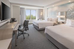 Il y a des hôtels qui mêlent à merveille esprit moderne, élégance et ambiance cosy : le Courtyard Halifax Dartmouth est de ceux qui relèvent haut la main le défi ! Situé à l’est de la ville canadienne d’Halifax, l’endroit se trouve dans un bâtiment haut de huit étages avec de belles lignes sobres. Ceci dit, on apprécie surtout l’intérieur, pensé dans un design cosy et épuré avec des tonalités de blanc, de gris et de chocolat tout à fait dans l’air du temps. On est fan du rez-de-chaussée avec ses lustres à base de néons blancs et son feu de cheminée qui crépite doucement en arrière-plan ! Comme on aime la literie moderne et haut de gamme présente dans toutes les chambres — à vous de voir si vous préférez le format king size ou plutôt le queen size, dans les deux cas c’est plutôt royal. Niveau loisirs, vous pouvez profiter d’une piscine intérieure (assortie d’un toboggan aquatique) qui donne sur les arbres du jardin, ou bien vous offrir une belle suée à la salle de sport, qui est ouverte 24h/24h. Notez qu’il y a aussi une terrasse où se détendre avec un bon cocktail signature. En parlant de cocktails, sachez qu’ici, la cuisine est américaine et le restaurant disponible aussi bien pour le petit déjeuner que le déjeuner et le dîner. Et pour ne rien gâter, le groupe Marriott International, qui possède l'établissement, fait partie des grands groupes hôteliers engagés dans une démarche durable et éthique.