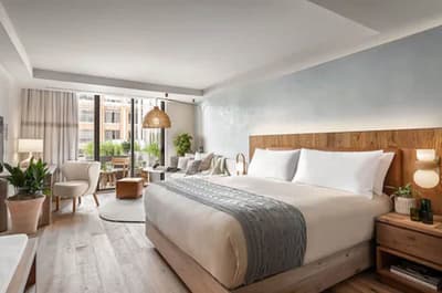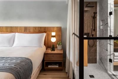 Un hôtel de luxe, oui, mais durable et chaleureux : voilà le programme que propose le 1 Hotel Toronto. Vous allez être choqué en entrant par l’harmonie des lieux : ici se déploient une végétation et du bois local brut pour un sentiment cosy immédiat. L’hôtel a beau compté 112 chambres, on se sent tout de suite à l’aise. Car cet esprit urban jungle écolo continue dans les chambres. Une déco à la scandinave lumineuse et efficace, élégante, dans laquelle on se plonge comme dans un bon bain bien chaud. Ca tombe bien, la salle de bain est top avec sa douche à l’italienne en pierres grises et/ou sa grande baignoire blanche au robinet noir. Ouvrez les rideaux : la cerise sur le gâteau est là, vous avez une vue incroyable sur la ville et le lac Ontario. Mais ça vaut quand même le coup de sortir de votre petit repaire de ressourcement pour vous rendre à la salle de sport, certes, mais surtout sur le rooftop avec sa piscine et son bar où chiller sans se presser. Côté resto, on est aussi gâtés : 3 tables différentes vous sont proposées, toutes surfant sur la vague durable Farm to table. Et l’émotion comfy se prolonge encore un peu avec les cocktails du bar du hall. A tester ! Enfin, on ne peut que mettre l’accent aussi sur la durabilité de l’espace. Du bois local, des pierres de la région, des végétaux, du compost, et une volonté zéro déchet, l’hôtel a tout bon. Une vraie retraite urbaine écolo à s’offrir.