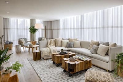 Cosy et minimaliste, elle est design et magnifique. Elle laisse pénétrer la lumière naturelle pour une pièce harmonieuse et lumineuse. Les pièces en bois et en rotin ajoutent une touche exotique à l’ensemble. Elle baigne de simplicité !