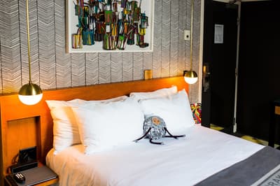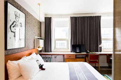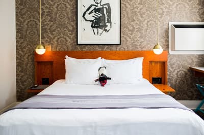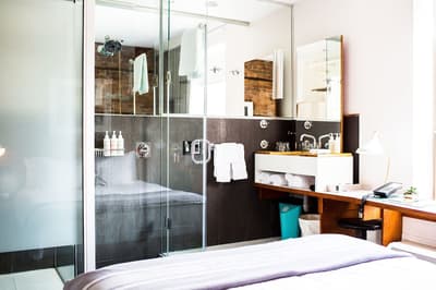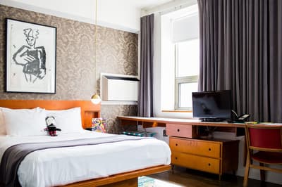 Depuis son ouverture en 2004, le Drake séduit la clientèle sans faiblir ! Véritable plateforme du cool, galerie du branché et belvédère du style, le lieu est devenu l'endroit idéal pour voir et se faire voir. L'ancien immeuble délabré a fait peau neuve pour devenir une adresse de référence, s'acoquinant avec le monde de l'art et celui des médias. Dans un renouveau permanent, l'esprit oscille entre décalé, décontracté et stylé. Parfaite mise en bouche dès le lobby, avec une ambiance rétro-rock post-industrielle très glamour, qui mélange parfaitement les genres. Les chambres affichent la même passion pour les couleurs franches et la multiplication des matières — tout en respectant les standards du confort, of course ! Vous allez adorer ce joyeux bazar, qui vous donnera plus d'opportunités que vous n'en aurez jamais eues pour briller sur Insta. Côté resto, c'est aussi régresso-savoureux qu'une bonne tarte de Grand-Maman, avec quelques classiques pour réparer vos excès... Bienvenue dans le monde magique du Drake !