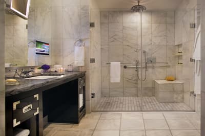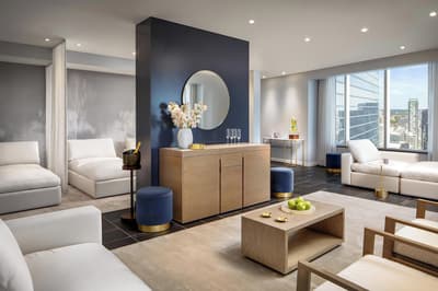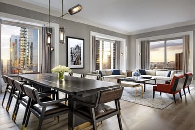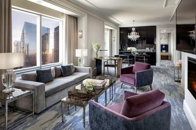 Du pur confort ! Cette belle suite a tout ce qu’il y a de nécessaire pour un séjour confortable et agréable. La grande baie vitrée offre une vue merveilleuse sur la ville vibrante. Elle accommode un grand lit king et le salon est parfaitement aménagé. Salle de bain chic.