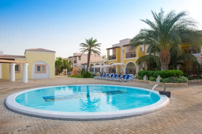 A peine le temps d’atterrir et de récupérer vos bagages, 7 minutes suffisent pour rejoindre votre hôtel ! Qui dit mieux ? Et cet emplacement ! Légèrement en surplomb de la plage de Chaves, l’une des plus belles, dit-on, de l'archipel. Un sourire et un cocktail : bienvenue ! Forcément, vous avez demandé une chambre avec vue sur l’océan, pour un réveil tout en beauté chaque matin. Avec un peu moins de 300 chambres, cet établissement All Inclusive fait partie des plus petits du Cap-Vert ! Un avantage pour ceux qui n’aiment pas trop marcher. Depuis le bâtiment central, des chemins pavés mènent à vos appartements, au cœur d’un jardin tropical bien fleuri. Du blanc égayé de rouge, c’est simple mais efficace. Il est temps de humer l’ambiance. 2 piscines d’eau de mer, dont une petite à débordement. Rafraîchissantes comme il faut et dynamisantes lors d’un tournoi endiablé de water-polo ! Rassurez-vous, les enfants ont la leur. Et surtout leur club dédié avec des animateurs francophones, s’il vous plaît ! On récapitule, les enfants sont gérés, ne reste plus qu’à vous occuper : farniente en bord de piscine après l’aquagym ? Massage à deux dans le joli spa ? Mais c’est peut-être en famille que vous ferez de chouettes promenades sur la plage. Le premier arrivé sur la dune a gagné une crêpe ! Easy, avec les douceurs au bar de la piscine. Justement, vous avez une petite soif. Impossible de ne pas l’étancher, que ce soit dans le lobby ou à la plage devant le coucher de soleil. Vous nous donnerez votre avis sur le grogue, le rhum local ?