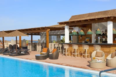 « Seulement pour adultes ». Un slogan qui va vous plaire ! Avec un accès direct à la longue plage de sable fin d'Algodoeiro, le Melia Llana Beach est un endroit idéal pour roucouler à deux, au calme, sous les parasols d’un resort entièrement dédié au confort des couples. S’ouvrant sur l’océan Atlantique, construit en U autour des deux piscines principales, l’hôtel déploie ses longs bâtiments blancs d’un étage, qui laissent apercevoir leurs balcons. Inauguré en décembre 2018, il est résolument moderne, aéré et meublé de manière contemporaine, décoré avec un code couleur ocre orangé rappelant les dunes de sable des alentours... Ses piscines concentrent les lieux d’activités, dont les bars où vous pourrez grignoter un snack en sirotant un verre. Dans le jardin, foncez vous affaler voluptueusement dans les hamacs ! Quant à l'élégant Yhi Spa, il vous propose des massages en duo en supplément, tandis que le gymnase équipé de machines pour renforcer vos biceps et quadriceps est en accès libre. A noter : la plage d’Algodoeiro est infiniment moins agitée que ses voisines et les vagues y sont plus sereines ! En plus, un centre nautique extérieur à l’hôtel propose des prestations de kite, planche, pêche, plongée.