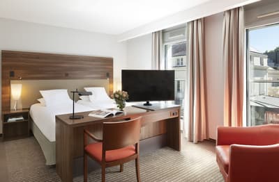 A une époque, tout le gratin local défilait ici pour se régaler de la haute cuisine de Jean Bardet, double macaron au Michelin. Et puis le chef a raccroché. Mais l’ex-Relais & Châteaux a gagné plus de calme et de sérénité : son très beau parc tout vert de 2,5 hectares avec bassin est désormais partagé avec la résidence pour seniors autonomes d’à côté — c’est un signe ! L’établissement lui-même dépend de The Crest Collection, un petit regroupement de 5 hôtels français haut de gamme du groupe Ascott. Quant au resto, refusant d’assumer la comparaison avec son prédécesseur, il se veut seulement « semi-gastronomique ». Mais il n’en est pas moins de qualité ! Comme tout le reste de cet hôtel, qui rassemble la partie château à proprement parler et une partie moderne appelée résidence. La première est une noble bâtisse du XVIIIe siècle, plusieurs fois remaniée, autrefois au coeur d'un domaine viticole. La seconde ne peut pas vraiment cacher son architecture contemporaine, avec des chambres plus fonctionnelles et dotées d’une kitchenette individuelle. Soufflez : dans ce quartier calme, séparé du centre-ville par la Loire, vous aurez plaisir à vous détendre au spa, avec sa piscine intérieure chauffée. A moins d'aller chiller dans un salon ou sous la verrière du bar !