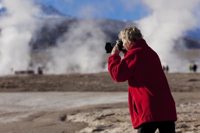 Dans le désert d’Atacama, au milieu des montagnes ocres orangées typiques de la région, l’hôtel Alto Atacama se découvre telle une petite oasis surgie au milieu de nulle part. On vient ici pour profiter de vacances ressourçantes et énergisantes dans un cadre spectaculaire. L’environnement, la vue panoramique, le silence, la conception même du lodge qui se veut une représentation aux normes écologiques d’un village andin, tout est réuni pour vous offrir une déconnexion totale du quotidien et une reconnexion à l’essentiel : vous et la Terre. En journée, vous profitez d’une large sélection d’excursions. De la lagune de Chaxa, immense étendue d’eau cristalline au milieu du désert de sel blanc aux maisons en adobe typiques de San Pedro, la ville voisine, en passant par les paysages lunaires des geysers de Tatio à 4 300 mètres d’altitude, la région est un immense terrain de jeu et de découvertes toutes plus irréelles les unes que les autres. Le soir venu, c’est un autre spectacle qui s’offre à vous. Au cœur de la nuit noire, vous grimpez jusqu’à l’observatoire aux étoiles du lodge. Là, confortablement allongé sur un transat, réchauffé par une douce couverture tissée dans le village voisin, vous plongez dans les méandres de la voie lactée… La magie opère et la soirée est passionnante. Croyez-nous, pas facile de quitter son transat pour rejoindre le confort de sa chambre… Laissez le quotidien derrière vous et embarquez pour l’hôtel Alto Atacama Desert Lodge, il se pourrait bien que ce soit le voyage de votre vie.