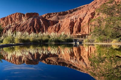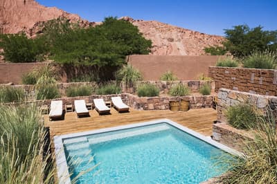 Spacieuse, elle donne sur la tranquillité sublime de l'oasis de la Cordillère du Sel et des collines andines que vous pourrez contempler de la terrasse privée avec mobilier. Elle dispose d’une douche extérieure pour prendre des bains rafraîchissants sous les étoiles et est située à quelques pas du restaurant et du spa. À noter qu’une chambre accessible aux personnes à mobilité réduite est disponible.