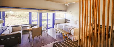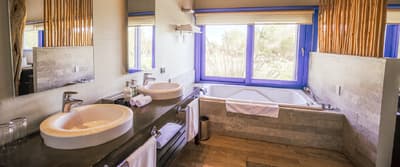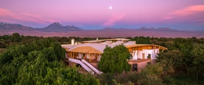 Campé sur un immense domaine aride à 2 400 mètres d'altitude, et entouré de paysages pour le moins accidentés, l'Explora Atacama ne ressemble à aucun autre. D'ailleurs, sa grande terrasse panoramique donnant sur le volcan Licancabur pose le décor ! Rappelons également que l'Atacama est le désert le plus haut de la planète et que l’absence totale de pollution lumineuse expliquent que le ciel de cette région soit l’un des plus purs au monde. D'où l'installation d'un observatoire au coeur de votre lodge, avec pour vous la possibilité de scruter les étoiles ! L'architecture du bâtiment s'inspire des habitats traditionnels en adobe de la région. De nombreuses ouvertures ont vue sur le désert, sur le jardin de plantes indigènes ou encore sur la piscine à débordement. Derrière ses murs, de vastes espaces communs, tels que les salons, les salles à manger et les espaces de détente, ont été conçus pour favoriser un sentiment de communauté et de détente. Leur style contemporain contraste avec celui des chambres, sobre, rustique, avec des boiseries mises à nues, des murs en briques, blanchis à la chaux et des chaises en osier. Quelques touches de bleu et de fushia viennent rehausser les matériaux naturels. Avant de partir en exploration, un petit-déjeuner ultra complet, composé de viennoiseries, de crêpes, de fromages, de fruits frais vous sera servi ! Et si vous partez pour la journée, les pique-nique sont à la hauteur. Il y a aussi ce quincho, ce barbecue d'antan , autour duquel hôtes et guides débriefent sur les impressions des uns et des autres en soirée. Mais rien ne vaut la cuisine gastornomique du chef ! Quant aux actions durables, l'Explora Atacama Lodge s'y applique chaque jour, pour préserver et valoriser un environnement sans pareille...
