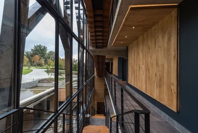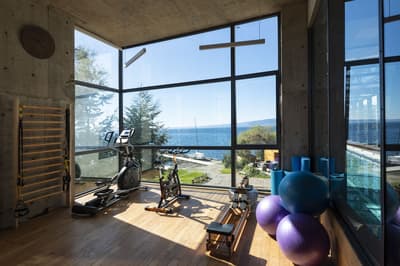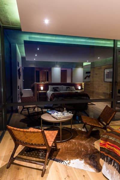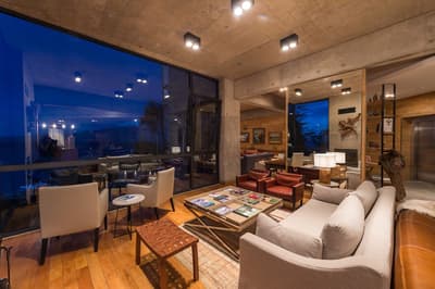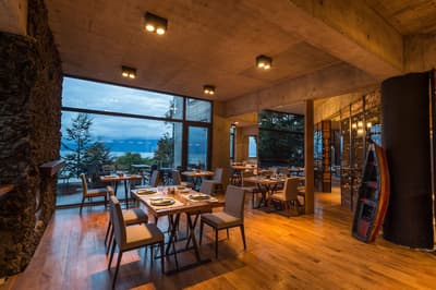 Et pourquoi pas envisager votre voyage au Chili comme une parenthèse détente et remise en forme loin, très loin du stress du quotidien ? Sur les rives du Lago Llanguihue, autrement surnommé le miroir du ciel, vous allez en prendre plein les yeux, vous déconnecter de tout et multiplier les instants de bonheur. Avant même votre arrivée, l’équipe se sera concertée pour vous offrir le séjour qui vous correspond le mieux. Ne soyez donc pas étonnés qu’à peine installés dans les profonds canapés de la réception, un délicieux verre de vin chilien à la main, votre guide privé vienne à votre rencontre et vous propose un programme totalement adapté à vos envies et besoins. Laissez-vous prendre en main et profitez de l’élégance de cet hôtel unique. Posé au bord du lac, face au volcan Orsono, les lignes géométriques et l’association des murs de verre avec la pierre locale et le béton armé sont un éloge à la pureté de l’environnement. Vous êtes déjà sous le charme de cette architecture ambitieuse et du design audacieux de l’ensemble. A l’intérieur, c’est le confort qui prime, murs et sols sont recouverts d’un élégant bardage en cyprès blond doré et partout, fauteuils et canapés profonds vous invitent à vous poser pour admirer comme il se doit les chaleureux tissus et tapis Maputche, mais aussi les reproductions des créations de l’artiste chilienne Matilde Perez dont les effets visuels hauts en couleur sont tout simplement envoûtants.