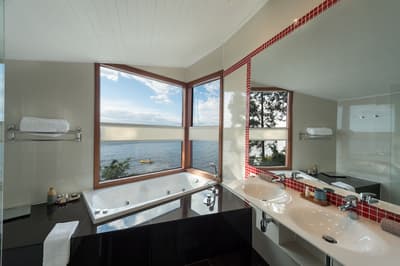 Chaleureuse, vous pourrez opter pour un lit double super king ou deux lits jumeaux avec une literie de qualité. La suite offre une vue captivante sur le lac Llanquihue et le volcan Osorno que vous pourrez contempler à loisir du coin salon confortable équipé d'un petit bar et d'un canapé lit. Durant votre séjour, vous bénéficierez des meilleurs services et équipements.