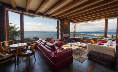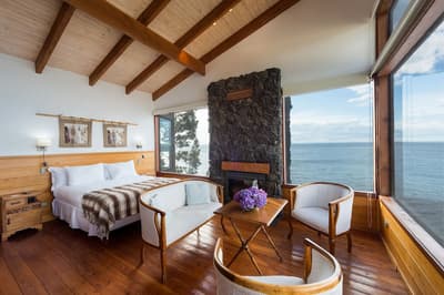 Cette magnifique villa supérieure s’ouvre sur une vue captivante sur le volcan Osorno et le lac Llanquihue que vous pourrez contempler à loisir. Après une longue journée d’activités, vous pourrez vous détendre dans le salon, près de la cheminée pour des moments de luxuriante sérénité.