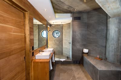 Contemporaine et design, elle arbore un beau plancher et un mobilier en bois et se complète dans des tons clairs. La chambre est dotée d’un lit douillet avec une literie de qualité et la salle de bains en marbre est équipée d’un double vasque, d’une douche et d’une baignoire. Ambiance relaxante !