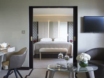 Télévision à écran LED avec chaînes multilingues et de services interactifs, Wi-Fi 40 Mbps gratuit, Technologie de chambre intelligente avec contrôle par application Web sur les appareils des clients pour : éclairage programmé, température ambiante, rideaux électriques, indicateurs de ne pas déranger et de service, Nespresso et nécessaire à thé/café et équipements Molton Brown.