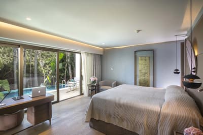 Dans un design luxueux innovant, il profite d'une technologie de chambre intelligente, d’un bureau multifonctionnel en bois et se complète par des accessoires raffinés. La chambre est dotée d’un lit king-size et la salle de bains entièrement en marbre est équipée d’une grande vasque, d'une baignoire spa Villeroy et Boch avec télécommande et d'une douche à l'italienne séparée avec chromathérapie. Le tout dans une atmosphère cosy !