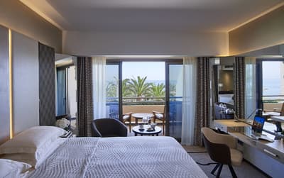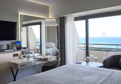 Elle offre une vue imprenable sur le bleu profond de la Méditerranée Mer que vous pourrez contempler à toute heure du balcon meublé, tout en sirotant votre boisson préférée. Idéale pour un couple ou un voyageur solo, cette chambre supérieure est située dans le bâtiment principal. Après vos activités, vous pourrez profiter d’équipements de haute technologie.