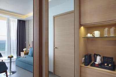 Elle profite d’une vue merveilleuse sur l’océan turquoise. Encore plus spacieuse, c’est l'idéal pour une petite famille. Elle accommode un grand lit ou des lits jumeaux et peut accueillir un canapé-lit ou des lits supplémentaires. Salle de bain avec douche.