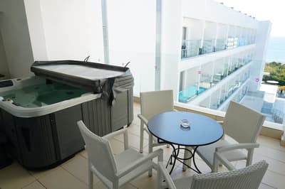 Le top ! D’une dimension généreuse, le balcon est meublé de belles chaises et profite d’une vue merveilleuse sur l’océan turquoise. Elle accommode un grand lit ou des lits simples. Petit coin salon aménagé d’un grand canapé. Salle de bain avec douche.